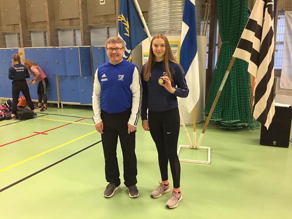 Nuorten SM hallikisoissa Helsingissä oli SSU:lla kahden kullan viikonloppu! Lauantaina Saana hyppäsi ennätyksensä tuntumaan N17-sarjan kolmiloikassa ja otti hienosti kultaa. Saana kisasi myös 60m aitajuoksussa, mutta ennätystä sivunnut aika ei tällä kertaa riittänyt finaaliin. Saanaa valmentaa Ari Koivisto. Toisen kullan SSU:lle nappasi sunnuntaina Emilia N19-sarjan kuulassa. Emilian ennätyksien täyteinen hallikausi sai näin hienon huipentuman. Emiliaa valmentaa isä Hannu Kangas.