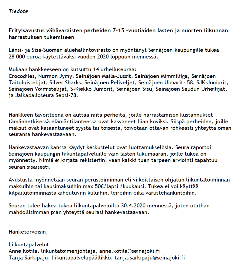 Seinäjoen Seudun Urheilijat RyPetäjätie 2 • 60550 Nurmo