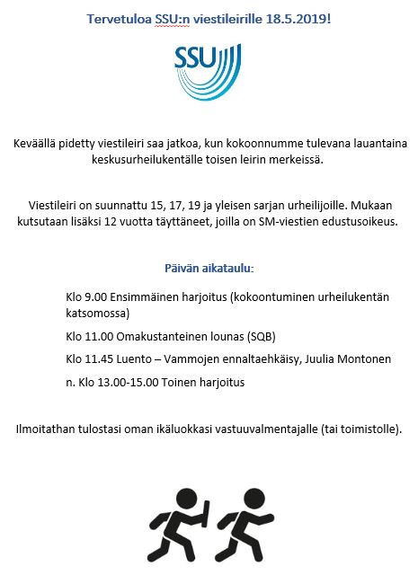 Ari K. ei ole paikalla 18.5 viestileirillä. Veikko Latva-Somppi täydentää M/N 17 valmentajarivistöä.